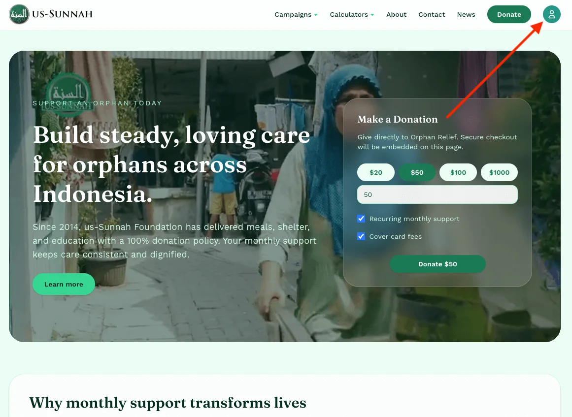 If you've ever donated to us-Sunnah—whether through our website, LaunchGood, or any other platform—your account is already set up. We've imported your complete donation history so you can see every gift you've ever made.