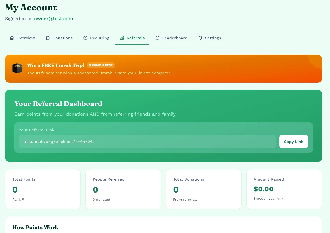 The leaderboard shows where you stand among all referrers. The more you share, the better your chances. And even if you don't win, every referral means more children fed—which is the real reward.